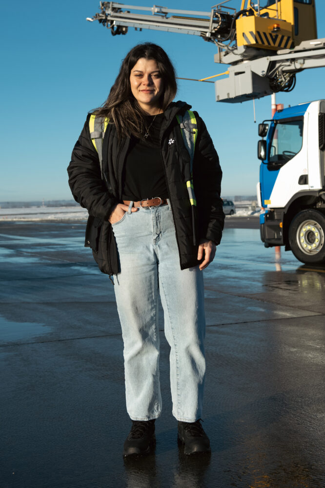 Lors de sa toute première saison, elle travaillait dans un camion de dégivrage, perchée dans une nacelle ouverte, la neige au visage et le boyau de glycol à la main. Tout comme l’entreprise, Madison a grandi et innové au fil de la dernière décennie.